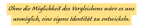 Die Theorie des sozialen Vergleichs nach Leon Festinger (1954) besagt, dass es ohne die Möglichkeit des Vergleichens zu keiner Identitätsbildung kommen könnte.