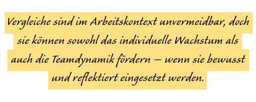 - Mitarbeiter zu ermutigen, Vergleiche als Chance zur persönlichen Entwicklung zu nutzen, ohne übermäßigen Druck zu erzeugen.